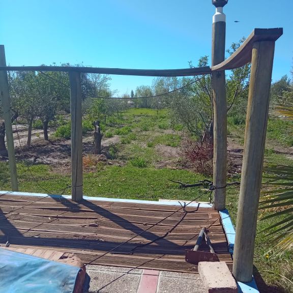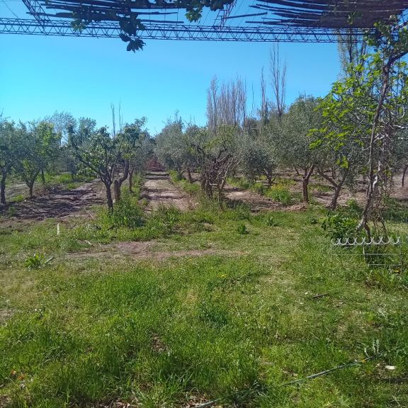 2.000 m² cultivados con árboles de olivos, duraznos y ciruelos, en plena producción.